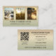 Tarjeta de visita con fotos personalizados (opcional) sobre un elegante fondo de arena verde. Al dorso hay una plantilla de código QR. Hermoso para un negocio relacionado con la preservación de paisajes, una empresa ecológica o verde y personalizable para otros fines.