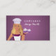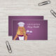 Plantilla bilateral de la tarjeta de visita para los panaderos con el ilustracion profesional de una mujer de moda del panadero que lleva un gorra del cocinero que sostiene una bandeja con los postres. Los gráficos son muy elaborados. Esta tarjeta del estilo del boutique es moderna y profesional. Artículos a juego disponibles. El ilustracion está disponible para autorizar para una tarifa para las aplicaciones fuera de esta tarjeta.