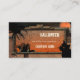 Tarjeta de visita de Halloween con una escena paisajística espeluznante con garra, araña y gato. Hermoso para todo tipo de negocios que atienden las celebraciones de Halloween.