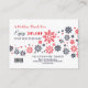 Trate a sus clientes con un descuento de vacaciones con esta tarjeta promocional de copos de nieve. (Puede utilizarse con o sin código de barras). Puede utilizarse como postal o como inserción.<a href='https://www.freepik.com/free-vector/illustration-of-barcode_3232987.htm'>Diseñado por Rawpixel.com</a>. <a href='https://www.freepik.com/free-vector/stylish-snowflakes-background-for-christmas-holiday-season_1384882.htm'>Diseñado por Starline</a>). <br/>() La tarjeta es fácil de personalizar con su texto, tipo de letra, color de letra, opciones de forma de papel y elección de seis tipos de papel.<br/>() ¿No es exactamente lo que buscas? Todos nuestros productos pueden ser personalizados diseñados para satisfacer sus necesidades sin cargo adicional.<br/>() Simplemente contáctenos en heartfelthelper@gmail.com.<br/>() Productos de coordinación disponibles: también disponibles en tamaño postal. ¿Quieres algo más? ¡Pásennos!