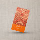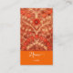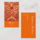 Tarjeta de visita con un antiguo patrón indio floral en color sólido neón naranja y fuentes blancas. Presenta un guión elegante. Personalice ambos lados ahora. Viene 100 en un paquete .