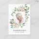 Este diseño botánico de eucalipto floral blanco encuadra perfectamente la foto de tu ser querido. Su nombre y fecha de vida están debajo. En la parte trasera hay otra vegetación y una flor de algodón blanco, y más abajo se encuentra The Lord's Prayer. Puedes cambiar esto a tu oración o poema favorito - o tu propio recuerdo personal.