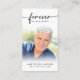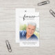 Foto Funeral Moderna Para Siempre Tarjeta De Oración Cruzada. Mantén la memoria de un ser querido cerca con esta tarjeta de oración personalizada personalizado que incluye una foto atesorada, el título PARA SIEMPRE EN NUESTROS CORAZONES, nombre y fechas en el frente y una oración editable o tu mensaje de recuerdo acentuado con una cruz (la muestra muestra muestra el poema "No te quedes en mi tumba y llanto"). Con su sencillo pero elegante diseño clásico blanco y negro y su moderna tipografía manuscrita, hace un gran placer para compartir en un funeral, servicio conmemorativo o Celebración de la Vida y ofrece confort y un homenaje duradero para la familia y amigos. Su tamaño pequeño y portátil de 3,5x2" (tamaño de cartera) hace que sea conveniente para los seres queridos llevarlo con ellos como recordatorio de la vida y el espíritu de su ser querido. La personalización hace que cada tarjeta sea única.