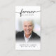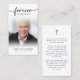 Fotografía de Simpatía Funeral para siempre en nuestra tarjeta de oración cruzada del corazón. Mantenga la memoria de un ser querido cerca con esta tarjeta de oración personalizada personalizado que incluye una foto atesorada, el título PARA SIEMPRE EN NUESTROS CORAZONES, nombre y fechas en la parte delantera y una oración editable o su homenaje de recuerdo acentuado con una cruz simple. Con su sencillo pero elegante diseño clásico en blanco y negro y su escritura moderna con toques, hace un gran placer para compartir en un funeral, servicio conmemorativo o celebración de la vida y ofrece confort y un homenaje duradero para la familia y amigos. Su tamaño pequeño y portátil de 3,5x2" (tamaño de cartera) hace que sea conveniente para los seres queridos llevarlo con ellos como recordatorio de la vida y el espíritu de su ser querido. La personalización hace que cada tarjeta sea única.