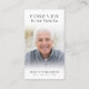 Funeral Para Siempre En Nuestra Tarjeta De Oración Fotográfica. Mantenga la memoria de un ser querido cerca con esta tarjeta de oración personalizada personalizado que incluye una foto atesorada, el título PARA SIEMPRE EN NUESTROS CORAZONES, nombre y fechas y un mensaje de recuerdo sentido editable. Con su sencillo pero elegante diseño clásico en blanco y negro y su elegante caligrafía, hace un gran placer para compartir en un funeral, servicio conmemorativo o celebración de la vida y ofrece confort y un homenaje duradero para la familia y los amigos. Su tamaño pequeño y portátil de 3,5x2" (tamaño de cartera) hace que sea conveniente para los seres queridos llevarlo con ellos como recordatorio de la vida y el espíritu de su ser querido. La personalización hace que cada tarjeta sea única.