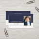 Añada tarjetas de inserción de personalizado con sus anuncios de graduación e invitaciones usando estas tarjetas de visita del gabinete personalizado. También es una gran opción para trabajar en red con otros, esta tarjeta tiene una plantilla de fotos para añadir la foto deseada. El diseño de la plantilla de texto incluye espacio para tu nombre, año de clase, nombre de escuela en la parte delantera e información adicional en la parte posterior para tu número de teléfono, dirección, correo electrónico y cuentas de medios sociales. Puede agregar o quitar cualquiera de estos elementos de texto como desee. Se muestra aquí en color blanco y marino, y el diseño de esta tarjeta también está disponible en otros colores.