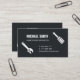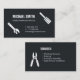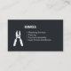 Una tarjeta de visita con siluetas iconos de útiles herramientas de mano que incluyen destornillador, spanner y cortador de alambre. Clásica paleta de colores blanco y negro. Personalice la información de su empresa en las plantillas de texto proporcionadas.