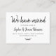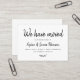 Minimalista Sencillo Elegante Hemos Mudado" Caligrafía caprichosa Nueva Invitación Hogar Trasladado inserto tarjeta de gabinete. Hágale saber a tus amigos y familia tu nueva dirección usando esta tipografía minimalista elegante de escritura con letra de bonito (o caligrafía) "We Have Moved" texto en la parte delantera y en la parte posterior "¡Por favor, mantente en contacto!" texto en blanco y negro. Fácil de personalizar con sus propios detalles.