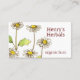 Una tarjeta de visita botánica de bonito con ilustraciones de hierbas medicinales febriles trenzadas con tinta y pintadas con acuarela. Al revés hay una cálida sombra de naranja. Personalizar el texto para que se ajuste a los detalles de su empresa.