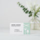 Una tarjeta de visita moderna con siluetas de arcillas de seda, un rastrillo de césped y un fondo verde pastel. Comunica una sensación de orden y orden perfecta para los que trabajan en el trabajo de la siembra y mantenimiento de césped, control de malezas y paisajismo. Personalice la información de su empresa en las plantillas de texto proporcionadas. Puede cambiar los colores de fondo para que se ajusten a los colores corporativos.