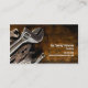 Una llave, alicates y spanners yacen sobre un fondo de naranja grueso en este diseño de tarjeta de visita manual. Las herramientas se ven bien usadas y dan la impresión de que el práctico conoce bien su oficio. ¡personalizar la tarjeta con tus propios detalles!