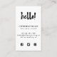 Una elegante, moderna, minimalista pero profesional tarjeta de visita vertical monocroma, perfecta para entrenadores de negocios en línea y emprendedores en línea. Este diseño presenta la palabra "hola" en el tipo de letra del pincel con marcador negro, junto con sus detalles personales en el tipo de letra negro moderno. Al final de la tarjeta están los iconos de los medios sociales para Facebook, Instagram y Twitter. Haga clic en "personalizar" para eliminar un icono si no es relevante para usted. La parte posterior está en blanco para que escriba una nota personal.
