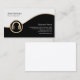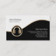 Esta tarjeta de visita de ingeniero de sonido incluye segmentos en blanco y negro separados por una banda dorada ondulada. Un elegante ícono de oro de un auricular yace en el lado inferior izquierdo del diseño, que generalmente es adecuado para negocios o profesiones relacionadas con la música, bajo, bajista, bajista, guitarrista, músico, banda, entretenimiento, temas de rock.