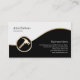 Esta tarjeta de visita del carpintero incluye segmentos en blanco y negro separados por una banda dorada ondulada. Un elegante ícono de oro de un martillo yace en la parte inferior izquierda del diseño, que es generalmente adecuado para negocios o profesiones relacionadas con la construcción, contratista, reparación de casas, reparaciones, mano de obra, trabajador cualificado, trabajo calificado, temas de habilidades comerciales.