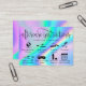 Modernos iconos de extensiones de pestañas de la tarjeta de postcuidado y fondo holográfico - utilice estas instrucciones de poscuidado con instrucciones ilustradas para sus clientes. En el reverso puedes añadir tu logotipo / opcional y tu información de contacto, así como tus cuentas de redes sociales.