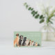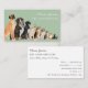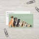 Una tarjeta de visita para servicios de cuidado de mascotas. Perfecto para paseantes de perros, guardaespaldas, niñera de perros o cuidado de perros. En un fondo blanco, se muestran imágenes acuarelas de diez perros, incluyendo un gran dane, boxer, labrador, beagle, bulldog, pomerania, beagle, dachshund y terrier, de grandes a pequeños. Personalice agregando los detalles de su negocio y contacto al principio y al final.