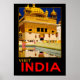 Visita el afiche de viaje de India. con un edificio indio de color oro y gente alrededor de una piscina reflectante. Oficina Estatal de Ferrocarriles de la India, por Fred Taylor, 1930 - 1940.