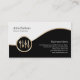 Esta tarjeta de visita de ingeniero de sonido incluye segmentos en blanco y negro separados por una banda dorada ondulada. Un elegante ícono de oro de una barra de volumen yace en el lado inferior izquierdo del diseño, que generalmente es adecuado para negocios o profesiones relacionadas con la música, bajo, bajista, bajista, guitarrista, músico, banda, entretenimiento, temas de rock.