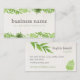 Un diseño de tarjetas de visita natural para elegantes negocios terrenales a los que les gusta elegantemente sencillo. Excelente para la industria de la salud o las empresas orientadas hacia la naturaleza o el cuidado natural de la piel, los alimentos o la alimentación saludable. El fondo es de madera clara y gris, con hojas de color verde acuático a lo largo del diseño. También es ideal para tiendas de salud, terapeutas holísticos, clínicas de spa naturales, personas orientadas hacia industrias vegetarianas y veganas y similares, todo natural, orgánicas.