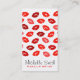 Tarjeta de visita con un hermoso patrón de labios rojos de mujer estilo moda sobre un fondo blanco. Perfecto para la promoción de su empresa. Adecuado para maquilladores, cosmetólogos, peluqueros, estilistas, salón de spa, peluquería y belleza, artista de manicura o agencia de modelos. ¡Personalizable.