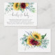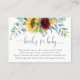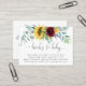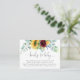 Una alegre tarjeta de "Books for Baby" para acompañar las invitaciones a la ducha de bebé. El diseño cuenta con un vibrante ramo de girasoles acuáticos, rosas, eucaliptos y vegetación de fondo amarillo intenso, borgoña, violeta, verde y azul verdoso. Los emparejamientos de caras de tipo moderno incluyen escritura manuscrita y un serif elegante. Puede utilizar el mensaje de solicitud de libro que se incluye en la plantilla de texto o personalizar este texto con sus propias palabras.