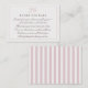 Añada un toque suave y atemporal a su suite de invitados con esta tarjeta LIBROS PARA BEBÉ, diseñada en una suave paleta rosa con una sutil franja vertical y una proa delicada. Inspirada en la elegancia francesa y el encanto de Hamptons, esta carta se coordina perfectamente con una celebración clásica de inspiración costera. Con un mensaje dulce y rimado, se pide amablemente a los invitados que traigan un libro en lugar de una tarjeta y que firmen su nombre con una nota personal. Cada libro se convierte en un keepsake, lleno de amor y memoria, mucho después de que la celebración haya terminado. Perfecto para aquellos que aprecian los tonos suaves y femeninos y una estética refinada y cuidada.