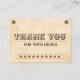 Estas notas de agradecimiento marrón occidental son personalizable y tu información de negocios es fácil de agregar. También puede añadir un código de descuento y su logotipo. Este estilo occidental es más adecuado cuando se tiene una tienda o marca de estilo occidental, cowboy, sureño o campestre y se quiere seguir con este tema.
