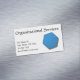 Hexagón de azul, con marcas de rompecabezas de sierra. Perfecto para promocionar su negocio que crea orden a partir del caos. (Administración de archivos, programación informática, ...). Personalice el nombre del grupo/empresa y la información de contacto.