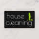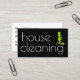 Diseño moderno de tarjetas de visita de limpieza con elegantes letras tipográficas en la parte delantera que muestra un símbolo de limpieza de casa junto con la información de contacto de su empresa. Personalizar los detalles con tu propia información de ama de casa en estilo.