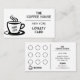 Tarjeta de fidelización minimalista blanca de personalizable para cafés y cafés, con una taza de café recién hecha con "Gracias A'Latte", detalles de negocios con un área para sellar la tarjeta con cada compra.