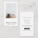 Una elegante y moderna tarjeta de diseño de interiores con fotografía de negocios, que presenta un interior minimalista luminoso de gran clave. Debe reemplazar esta foto con una foto vertical propia. Esta foto es sólo un marcador de posición. Añade tu foto de un espacio interior, o simplemente una foto de ti mismo en formato vertical. Personalizar con su información en la parte posterior de la tarjeta. Haz que tu tarjeta destaque más que la tarjeta de visita de un diseñador de interiores. Esta imagen destaca un espacio moderno limpio.