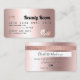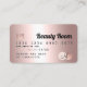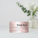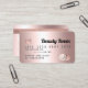 Una elegante y moderna tarjeta de crédito estilo tarjeta de crédito Hair y maquillador con una tipografía de escritura moderna sobre un fondo de Relieve metalizado metálico rosa de moda falso oro. todo el texto es personalizable, añada tus medios sociales. Con una franja de oro falsa rosa. Añada su logotipo, su código de monograma y QR.