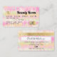 Una elegante y moderna tarjeta de crédito estilo cabellero y maquillador estilo tarjeta de crédito con una moderna tipografía de escritura en una moda pintada color pastel boho tiña color agua y fondo de moda en Relieve metalizado metálico dorado. todo el texto es personalizable, agrega tus medios sociales. Con una franja dorada falsa. Añada su logotipo, su código de monograma y QR.