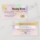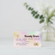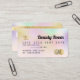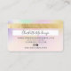Una elegante y moderna tarjeta de crédito estilo cabellero y maquillador estilo tarjeta de crédito con una tipografía moderna de escritura en una moda nacre iridiscente holográfica oscuro en tonos rosa pastel y Relieve metalizado metálico dorado de fondo moderno. todo el texto es personalizable, agrega tus medios sociales. Con una franja dorada falsa. Añada su logotipo, su código de monograma y QR.