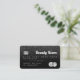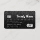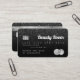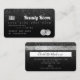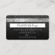 Una elegante y moderna tarjeta de crédito estilo tarjeta de crédito Hair y maquillaje artista con una tipografía de escritura moderna sobre un fondo de moda oscuro purpurina negro de cristal de moda. todo el texto es personalizable, agrega tus medios sociales. Con una franja de plata falsa. Añada su logotipo, su código de monograma y QR.
