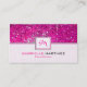 Elegante purpurina rosa y brillante personalizable de tarjetas de visita. Tarjeta de negocios de belleza fresca para una industria estética y cutánea.