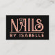 Un diseño editable de la plantilla de la tarjeta de presentación de la tecnología de las uñas creado con un diseño de logotipo de la tipografía de uñas rosas, combinando la tipografía con un corazón rosa incrustado entre letras. Perfecto para un estilo de logotipo de título, seguido de su nombre.