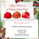 Tarjeta de visita con Navidades de oro y rojo festivo con deseos de vacaciones. Esta tarjeta de visita es una hermosa manera de agradecerle a los clientes existentes o darle la bienvenida a nuevos clientes.