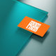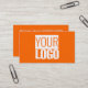 Tarjeta de visita con fondo de color sólido neón naranja y un logotipo de portada. Personalice ambos lados ahora. Diseño moderno y de moda de Alma Wad. Viene 100 en un paquete .