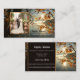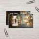 Una plantilla moderna de tarjetas de visita con tu propia foto enmarcada por una imagen de coloridas hojas de otoño en el paseo marítimo. Personalizable para cualquier profesión.