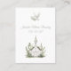 Una carta de keepsake sencilla y encantadora para un bautismo neutro de género, con un ilustracion dulce de una paloma blanca y una pequeña capilla blanca con hojas verdes. El ilustracion es totalmente personalizable y se puede sustituir fácilmente por una foto de su elección. Estas tarjetas hacen bellos favores de bautismo y recuerdos sentidos para sus invitados.