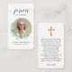 Una simple tarjeta conmemorativa muestra "Para siempre en nuestros corazones" con la foto de su ser querido en una corona de eucalipto, su nombre y fechas en el frente y un poema y una cruz en la espalda (se puede cambiar a sus propias palabras). Hermoso por un tesoro de mantenimiento, servicios funerarios y celebración de la vida en memoria. COINCIDIENDO elementos de nuestra colección.