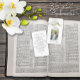 Elegantes orquídeas blancas, una foto y los detalles de tu celebración de la vida en la parte delantera y la oración del Señor, o cualquier oración, en la parte trasera. Hermoso de incluir en un funeral, servicio conmemorativo, aniversario de la muerte o en notas de agradecimiento. COINCIDIENDO elementos de nuestra colección.