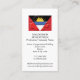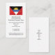 Tarjeta de presentación patriótica ANTIGUA con diseño combinado de contorno de mapa y bandera de ANTIGUA & BARBUDA. La imagen de la bandera es PERSONALIZABLE, por lo que puede reemplazarla con su propia foto o logotipo, y personalizarla con su nombre y detalles de contacto. Al revés, tiene la opción de agregar su propio texto o borrar.