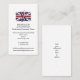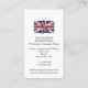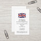 Elegante tarjeta de presentación patriótica de la UNIÓN JACK, que muestra el diseño combinado del esquema del mapa y la bandera del REINO UNIDO de GRAN BRETAÑA e IRLANDA DEL NORTE. La imagen de la bandera es PERSONALIZABLE, por lo que puede reemplazarla con su propia foto o logotipo, y personalizarla con su nombre y detalles de contacto. Al revés, tiene la opción de agregar su propio texto o borrar.