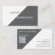 Las modernas tarjetas de visita geométricas geométricas de color gris oscuro y blanco muestran tu nombre en la parte delantera en texto gris sobre texto blanco y blanco sobre gris. La parte posterior incluye un código QR de personalizable, el nombre de su trabajo, especialidad o empresa, y la información de contacto sobre un patrón de bloque de color gris y blanco invertido al frente. Personalice el código QR con el enlace de su portafolio o sitio web y agregue su texto en la barra lateral. Vea más tarjetas de visita personalizado en la colección de Artes Rocklawn. Copyright ©Claire E. Skinner. Todos Los Derechos Reservados.