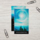 Tarjeta de visita de naturaleza solar enérgica con azul turquesa y negro como colores predominantes.