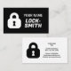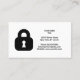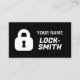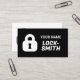 Plantilla de la tarjeta de presentación del locksmith con el logotipo del candado. Diseño moderno con bloqueo e icono de teclado. Cree tarjetas de color personalizado con los datos de contacto y el nombre de la empresa. Tarjeta profesional para tienda, experto en seguridad, almacenamiento seguro, tienda y más. Esquinas redondeadas opcionales.