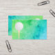 El diseño de esta plantilla de tarjetas de visita para bola de golf tiene un fondo de diseño de pintura acuarela que se puede personalizar para cualquier negocio o profesión. Derechos reservados de Ann Powell.