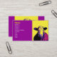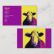 plantilla de tarjeta de negocios de vaca de estilo pop extremadamente brillante en color amarillo neón y violeta brillante, diseño original contemporáneo de moda, derechos reservados de autor de pintura digital Ann Powell.